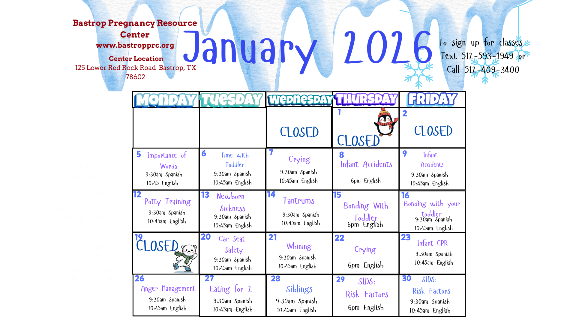 All services we provide are free. We offer material items (upon availability) for pregnant moms or moms and dads with a child up to 36 months. Contact us today for free education classes.